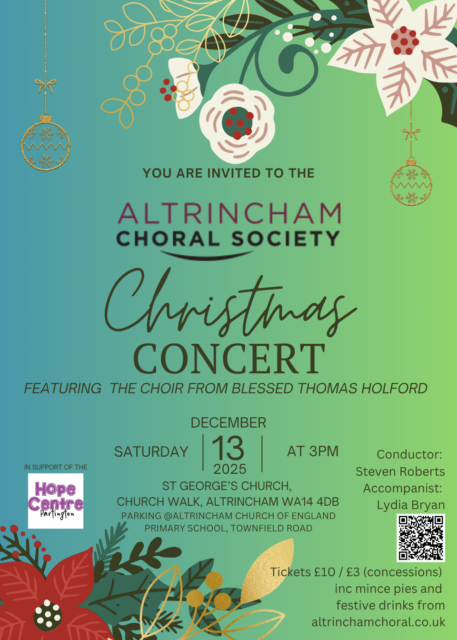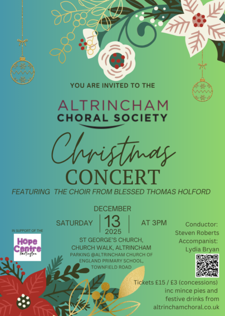 Altrincham Choral Society is a large mixed voice choir of around 120 singers and was established in 1945.